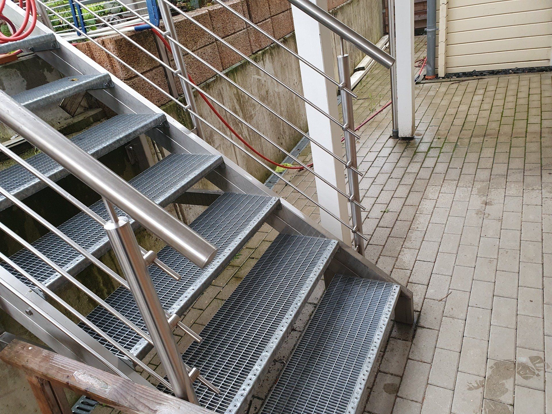 von Handläufen, Geländern, Treppen und sonstigen Bauteilen aus.